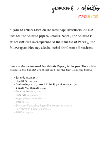 Ib German B Abinitio Articles Texts For Revision Teaching Resources