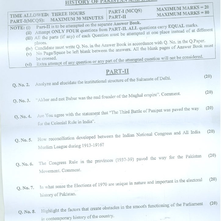 Previous CSS 2018 British History Paper. Past papers are essential to observe the exam pattern and to understand the structure of exam. Past Papers 2019 Federal Public Service Commission CSS History of USA Subjective Institute.