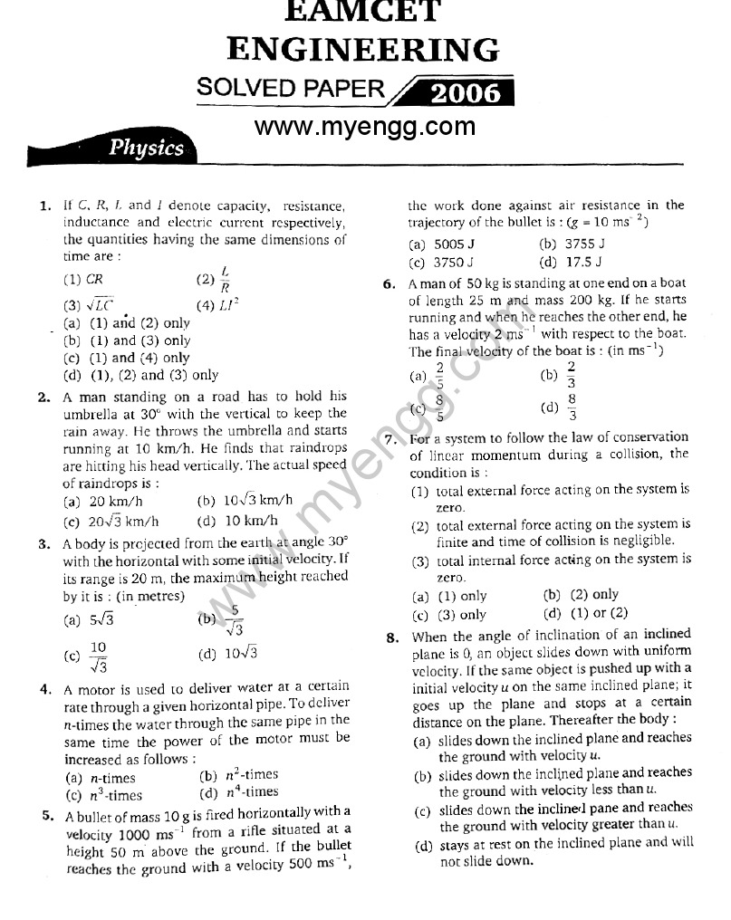 Open one set at a time and begin solving questions from one subject. APEAMCET question Paper with solutions-2011. EAMCET 2009 previous year paper - EAMCET 2009 Question paper with solutions.